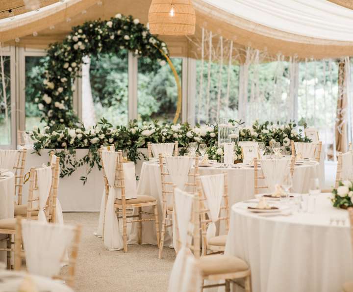 Entering through our aged English Oak-Framed Orangery out on to the Indian stone patio, before heading through into our beautiful glass fronted marquee, allowing all the splendour of the countryside to be part of your special day.